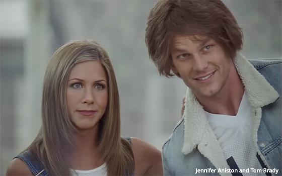 In the 60-second spot, Affleck, who has never been in a sitcom, was joined at a Dunkin’ store by seven former sitcom stars, some in character and some not, plus Tom Brady (seen in the screenshot above with Jennifer Aniston).