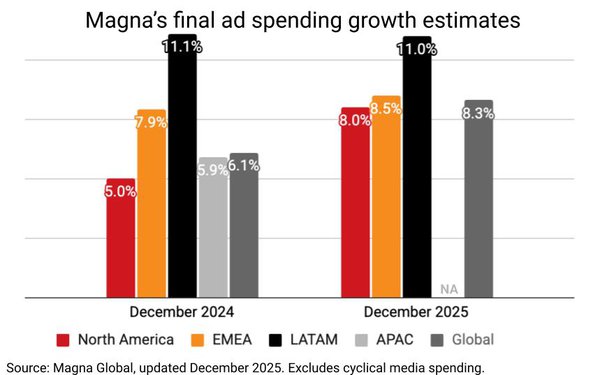 Global's last -- and Omnicom Media's only -- public global/regional ad-spending estimates, the former Interpublic unit quietly updated its Atlas database at year-end with its official December 2025